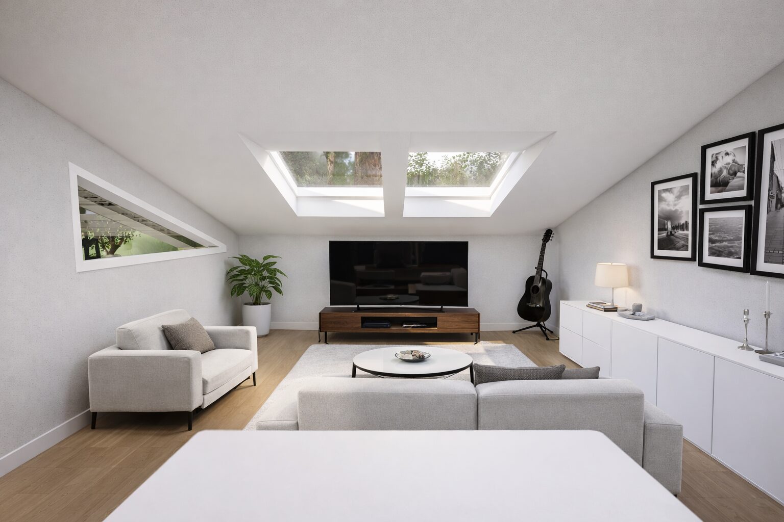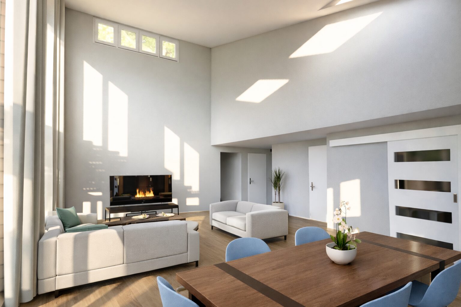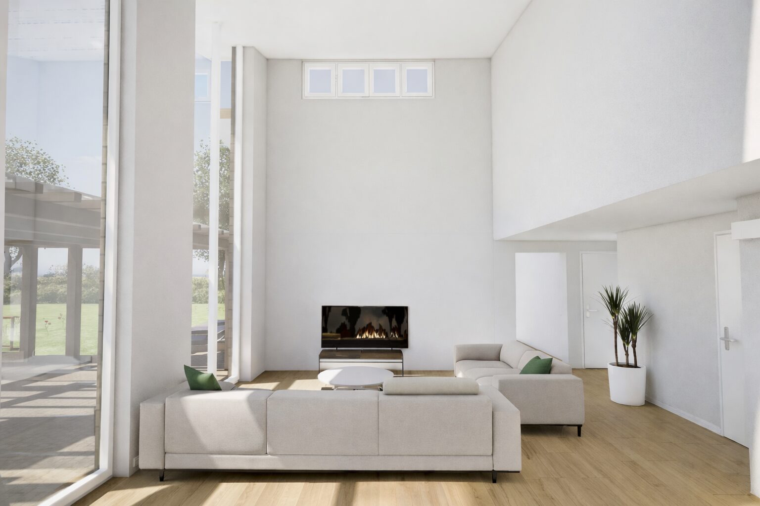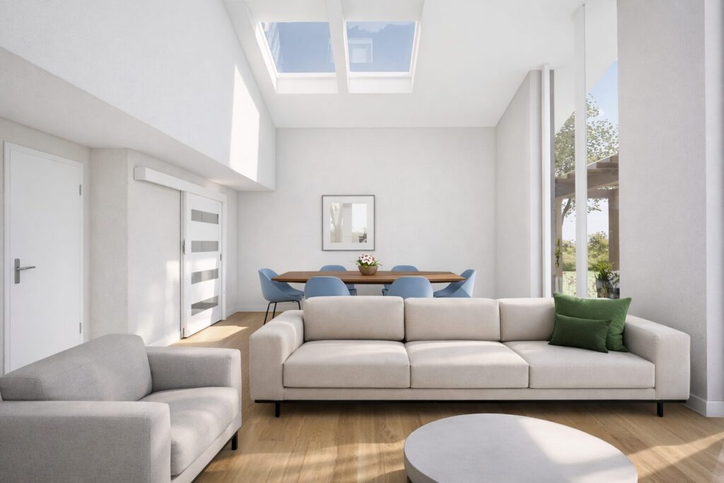 Großzügige Verglasungen und raffinierte Oberlichter fluten die Räume mit natürlichem Licht und schaffen dabei eine klare, moderne Formsprache. Die reduzierte Linienführung und puristische Ästhetik verkörpern eleganten Wohnkomfort auf höchstem Niveau.